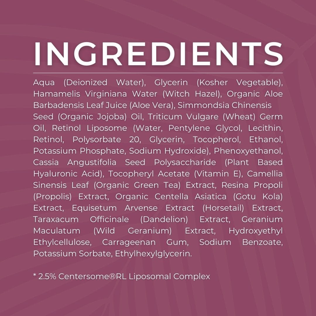 - Formulated with 1% encapsulated, time-released retinol liposomes (delivering 0.1% pure retinol)