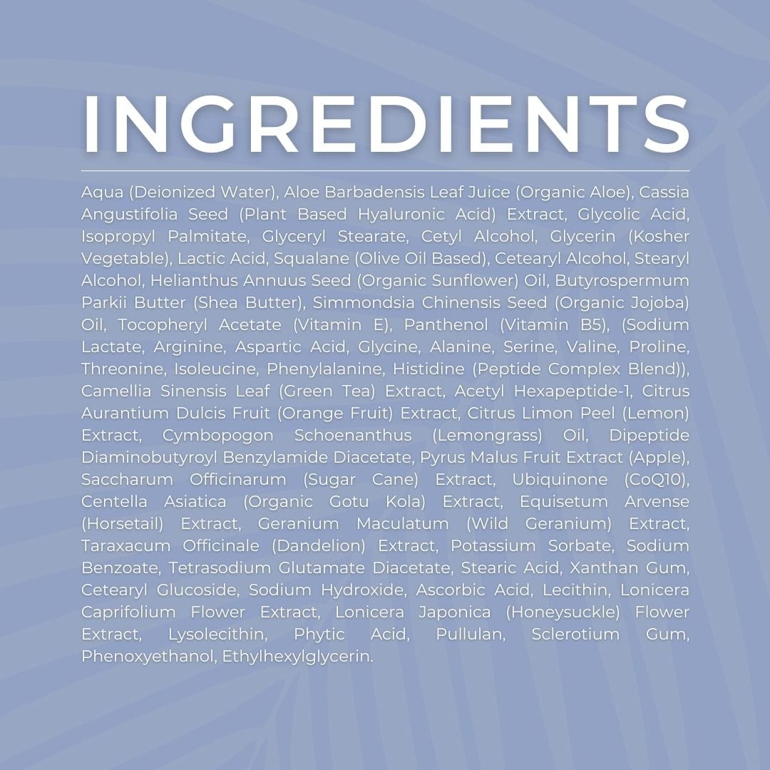 - Organic Aloe & Plant-Based Hyaluronic Acid: A foundation of organic aloe vera and hyaluronic acid from the cassia angustifolia seed offers deep, penetrating hydration.