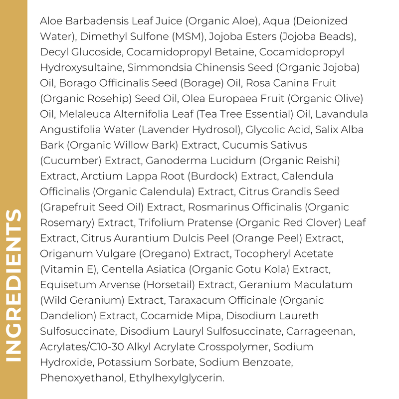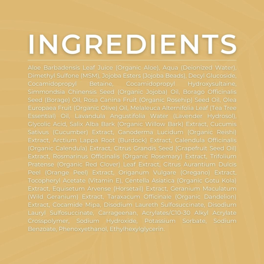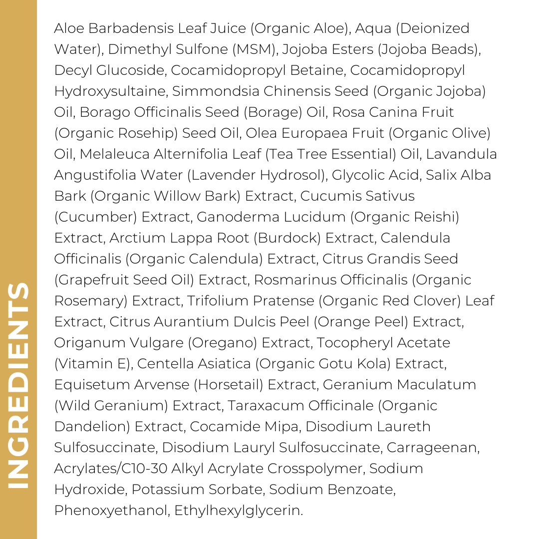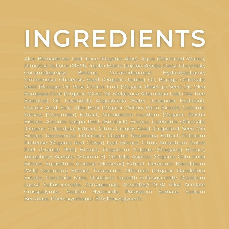 - Organic Aloe: A natural soothing agent, aloe hydrates while calming the skin, making the cleansing process gentle.