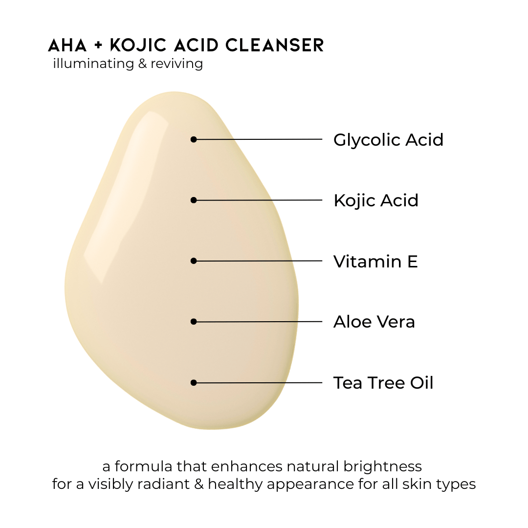 Our Brightening AHA & Kojic Acid Cleanser's formula is a testament to our philosophy of blending scientific innovation with nature's finest ingredients. Incorporating this cleanser into any daily routine will not only help purify the skin but also work to enhance its natural brightness for a visibly radiant and healthy appearance.