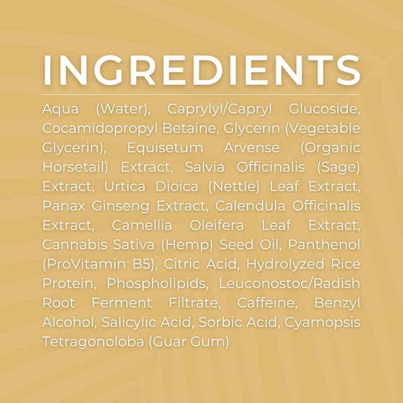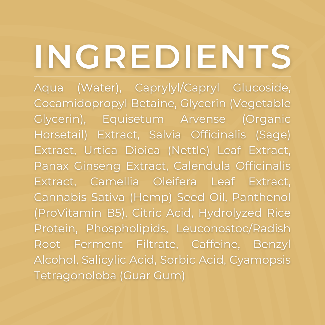 - Cannabis Sativa (Hemp) Seed Oil & Glycerin (Vegetable Glycerin): These hydrating agents lock in moisture, providing lasting hydration and preventing dryness across all skin and hair types.