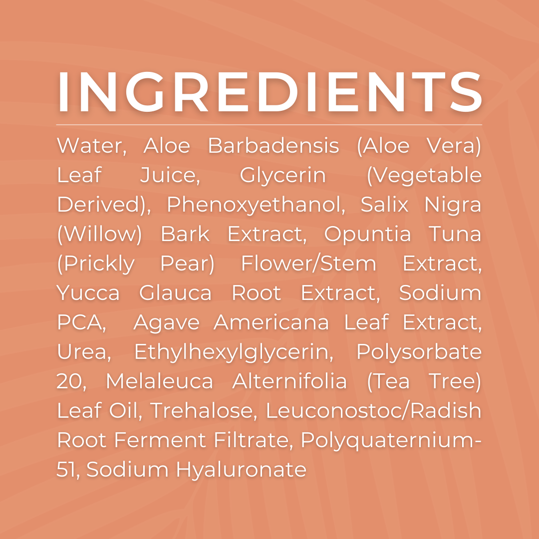 - Opuntia Tuna (Prickly Pear) Flower/Stem Extract & Agave Americana Leaf Extract: Desert-inspired botanicals packed with antioxidants and nutrients that protect the skin from environmental stressors while boosting hydration.
