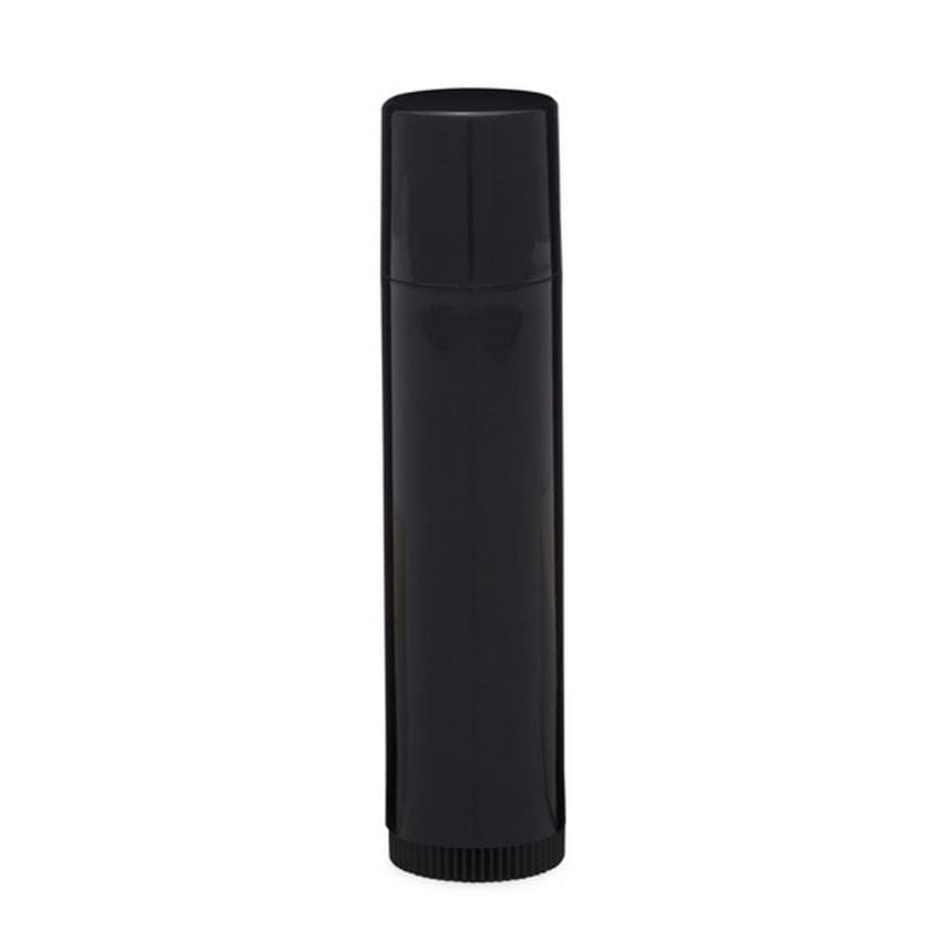 A durable black PP plastic lip balm tube, available in both round and oval styles.