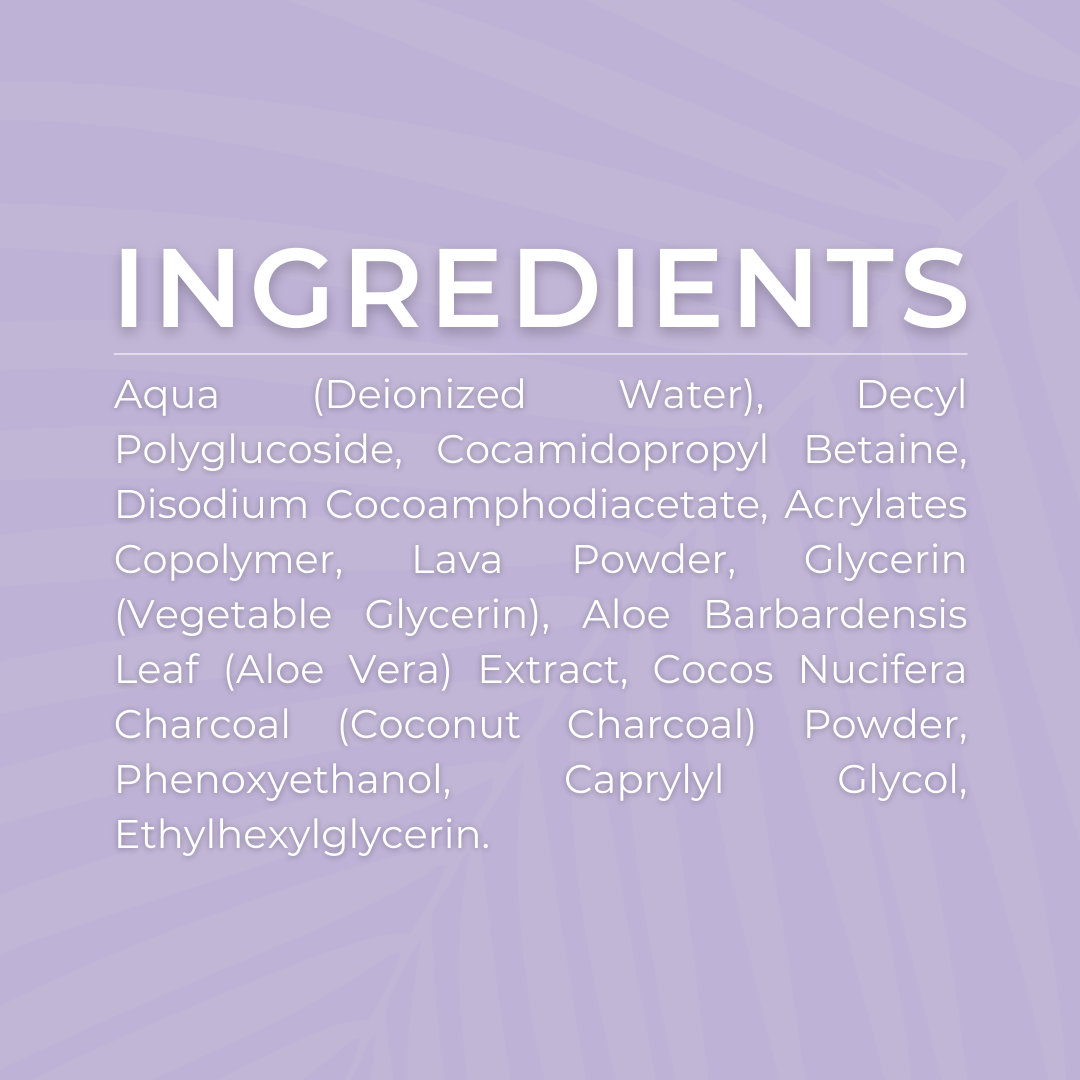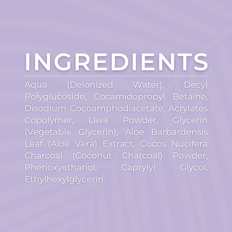 Dive into the purifying embrace of our Coconut Charcoal & White Lava Exfoliating Body Wash, a unique blend that combines the detoxifying powers of Activated Coconut Charcoal with the gentle exfoliating properties of White Lava. Designed to offer a deep cleansing experience while softly buffing away dead skin cells, this body wash creates a rich, full foam without the harshness of sodium lauryl sulfate, making it an excellent choice for all skin types seeking a refreshed and revitalized complexion.