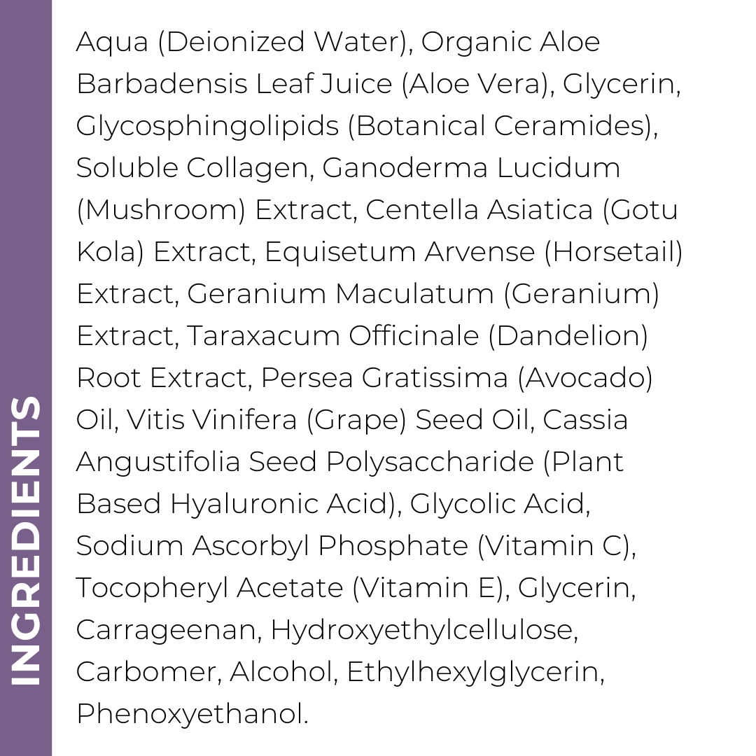- Glycosphingolipids (Botanical Ceramides) & Soluble Collagen: Enhance the skin's moisture barrier, improving hydration and elasticity to smooth fine lines and prevent signs of aging.